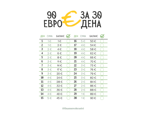 Предизвикателство как да събереш 90 евро за 30 дни.